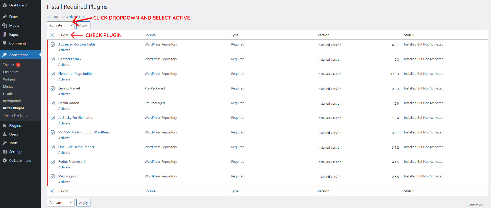 If you Installed all Plugins then follow the step below for Plugin Activate